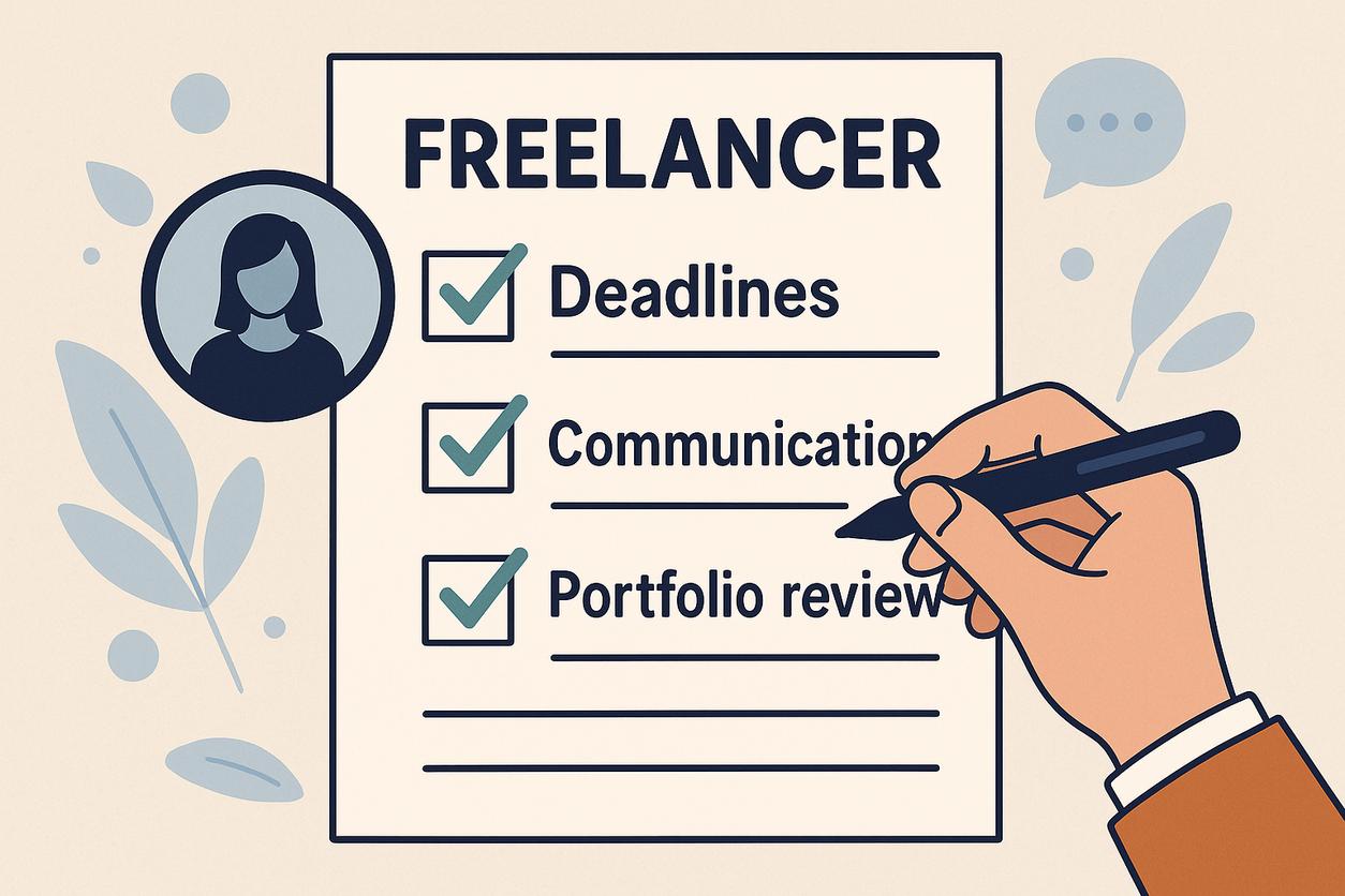 เพื่อเลือกฟรีแลนซ์ที่มีความสามารถและเหมาะสม คุณควรตรวจสอบผลงานที่เคยทำมาก่อนหน้า ดูว่าพวกเขามีประสบการณ์ในงานประเภทที่คุณต้องการหรือไม่ และตรวจสอบรีวิวหรือคำนิยมจากลูกค้าที่เคยจ้างงาน เพื่อตรวจสอบคุณภาพและความน่าเชื่อถือ งบประมาณและราคาก็เป็นปัจจัยสำคัญ คุณควรรู้ว่าความประณีตในการทำงานที่ต้องการนั้นจะอยู่ในช่วงราคาที่พวกเขาคิดหรือไม่ เพื่อความมั่นใจว่าคุณจะได้งานที่ตรงกับความต้องการในราคาที่เหมาะสม